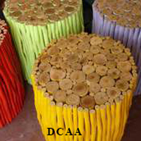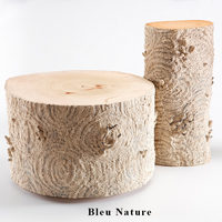 Sections de tronc à l’état (presque) brut ; tranches d’arbre à peine écorcées ; bouquets de branchettes ; branches à l’état quasi nature…